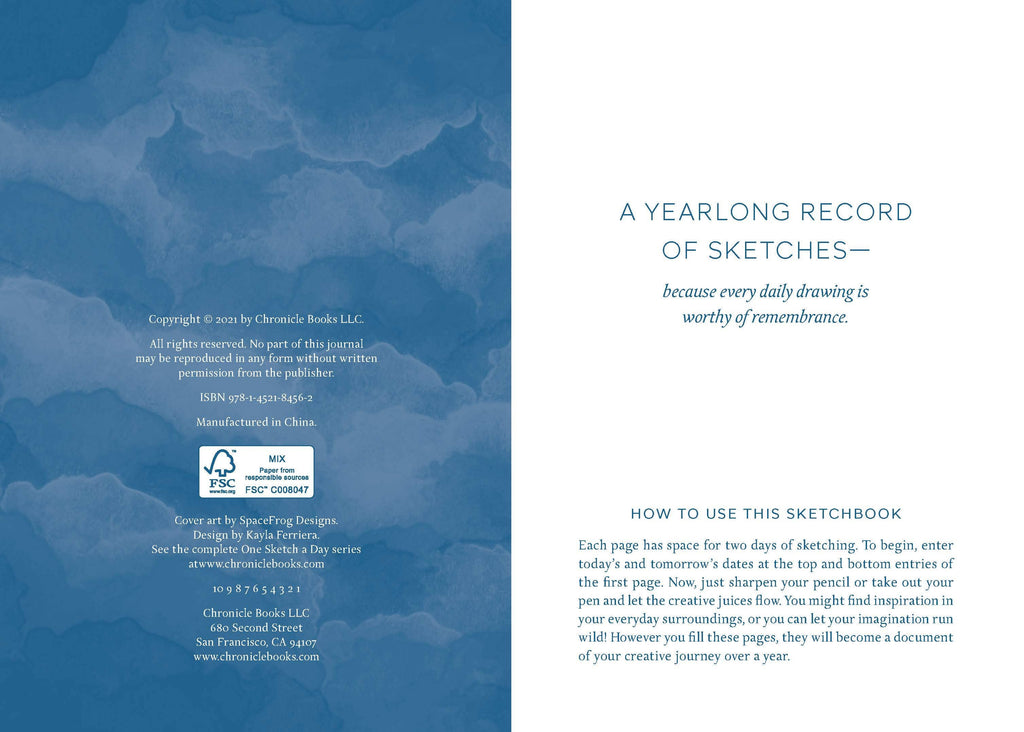 This sketchbook offers space to doodle, build drawing skills, or document experiences every day for a year. Once completed, it becomes a keepsake archive of a year's worth of artistic explorations. Featuring stunning cover artwork by SpaceFrog Designs, gilded page edges, and a ribbon marker, this handsome visual journal makes a thoughtful gift for budding sketchers and practiced artists alike.