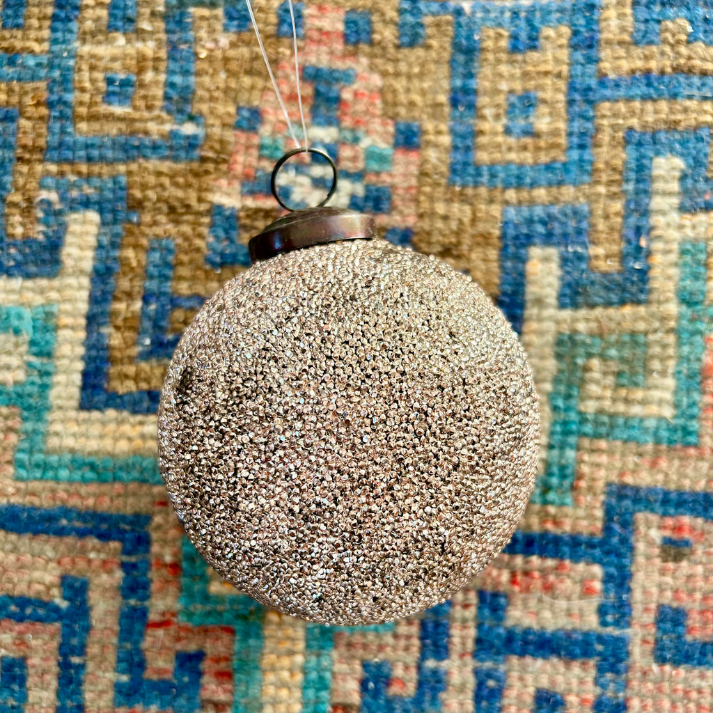 Shimmering blush-toned crystals encrust glass spheres to add an extra dose of shimmer to your tree.